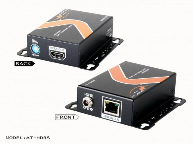 The Atlona AT-HDRS is an HDMI over single Cat5 receiver unit which is designed to work with 1x9 HDMI Splitter (Model: AT-HD19SS) or HDMI Transmitter (AT-HD50SS). The AT-HDRS is capable of extending high resolution video and audio from the 1x9 HDMI splitter up to 1080i @ 200ft and 1080p @ 110ft over single Cat5 or Cat6 cable.