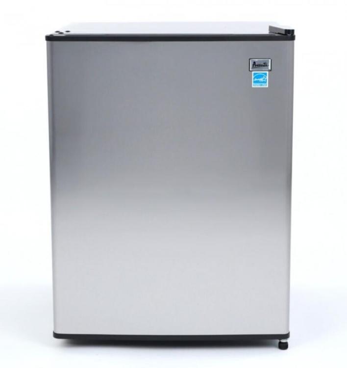 Keep your snacks and favorite beverages close by in the compact, 2.4 cubic foot black refrigerator with a stainless steel door from Avanti. The perfect mini fridge for the office, dorm, man cave, she-shed, bar, bedroom, or anywhere you need a little extra refrigerator space. The built-in door shelves can accommodate 2-liter bottles, as well as other drinks and condiments. Use the adjustable, removable shelving to arrange salads, fruits, snacks, and other foods for easy access throughout the day. This compact fridge features automatic defrost, so your foods remain fresh and cold. Select the right settings for your items with the full range temperature control.