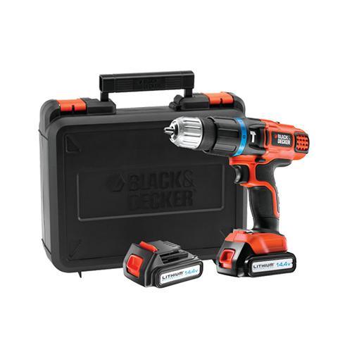 Black & Decker EGBL148KB 220volts 14.4V 2 Gear Hammer Drill The power and speed to drill into masonry, steel and wood 11 position clutch for perfect screwdriving into a variety of materials with different screw sizes Lithium Ion battery holds over 80% of its charge over 90 days whilst idle. No need to charge unit before each use Variable speed for ultimate fingertip control for all drilling and screwdriving applications Two gears for high and low speed drilling and screwdriving: First gear provides greater torque and control; second gear provides greater speed Spring loaded battery system for quick and simple battery change and a more secure fit Anti slip soft grip which provides comfort when using the drill 220volts 50 Hz