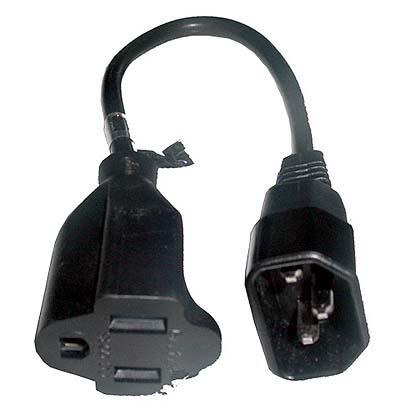 8 inch cable with IEC 320 male one side & U.S. receptacle on other side.