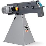 A powerful belt grinder on which you can rely for professional applications: robustly built, easy to assemble, and equipped with everything that eases the work and the operation. Plane grinding is part of the standard features of the GRIT. A large grinding area of 75 x 420 mm is just as standard for both GX 75 2H machine as a height-adjustable plane grinding table and the easy belt adjustment. The great power output of the motors provides the GX 75 2H belt grinder with outstanding capacities. High grinding capacity in brief time is thereby guaranteed - just as comfortable working. The GX 75 2H is especially low in vibration during operation and facilitate exact working thanks to its patented belt tensioning system. Robust AC motor provides grinding with steady speed. Processing suiting the material by self-adjusting belt tension. Comfortable operation by adjustable work level, height-adjustable support for plane grinding, and easy belt adjustment. Great work reliability because of sturdy machine base and solid cutting table. Integrated dust extractor connection (3-9/16" / 90 mm dia.). Detachable swarf, grinding particle, collector.