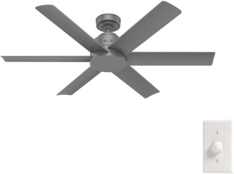 HUNTER Fan Kennicott 50936 Ceiling Fan for Indoor and Outdoor Use with Wall Control and 6 Blades in Matte Silver Colour, Ideal for Summer and Winter Mounting type Ceiling Mount Controller type Control wall control Material Alloy Steel Number of speeds 3