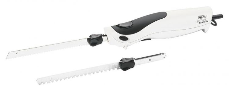 The Wahl James Martin electric knife with its powerful 120W motor makes light work of carving and cutting, with its soft touch grip handle which is designed for easy and comfortable use. There is a double action safety lock to prevent the knife being accidently operated and a safety button for the safe removal of the blades making it a valuable addition to your kitchen.