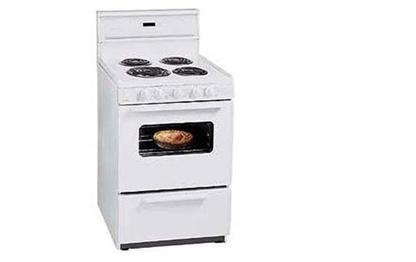 220-240 Volt / 50 Hz, 24 Electric Range 4 Burners Surface light indicator Electronic clock Porcelain oven interior Door with glass window to check process of cooking 5 Rotary knob controls(1 for oven and other for burners) Large storage drawer