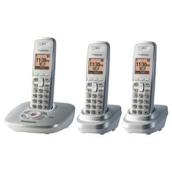The Panasonic KX-TGF352C offers noise reduction, hearing aid compatibility, call blocking, baby monitor function, talking caller id, speakerphone, power back-up operation, with 1 corded handset, 2 cordless handsets and a digital answering machine.
