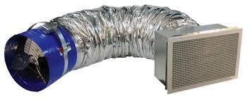 This fan motor and self-contained duct system hangs in the attic and the fan's whisper quiet operation is made possible by QuietCool's patented acoustical ducting that provides six feet of separation between the fan motor-head and the ceiling intake grill inside the house.