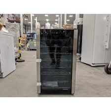 "93 Litres Capacity Energy efficiency rating: G (equivalent to A in the old rating) Noise level: 39 dB Holds 34 bottles of wine 6 chrome shelves and 1 chrome basket Temperature range: 5 - 18°C Operating temperature: 16 degrees to 32 degrees Adjustable feet and 1.2m power cord for versatility Metal backed Compact Freezerless Manual Defrost Controlled with the touch buttons LED display Interior light illuminates the cabinet Sleek and stylish design "